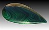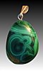 Malachitové šperky Už ve starověku se zelený kámen nosil jako ochránce před nemocemi. Dnes se mimo jiné věří, že zlepšuje zrak, což jistě souvisí s jeho vzhledem. Po vyleštění se kulovité útvary minerálu projevují sytě zelenými pruhy, miskovitými a prstencovitými strukturami, které někdy připomínají zornici. Rozsáhlá ložiska v Rusku, ze kterých pochází mnoho malachitových kusů muzejní kvality, byla během carské éry téměř úplně vyčerpána. Dnes se vysoce kvalitní malachitové krusty nacházejí zejména v Africe, odkud pocházejí i zde nabízené kameny. |