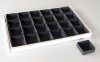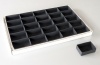 Skádací papírové krabičky z kvalitního foto papíru (cca. 300g/m2) jsou určené jako rastrové dělení speciálních kartonových krabic (fletů) na příslušný počet přihrádek. Nabízíme je v barvě bílé a černé s možností dělení fletu na 12, 18, 24, 25, 35, 54 a 70 přihrádek.